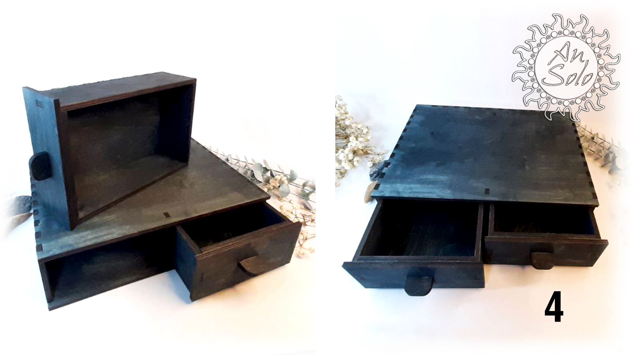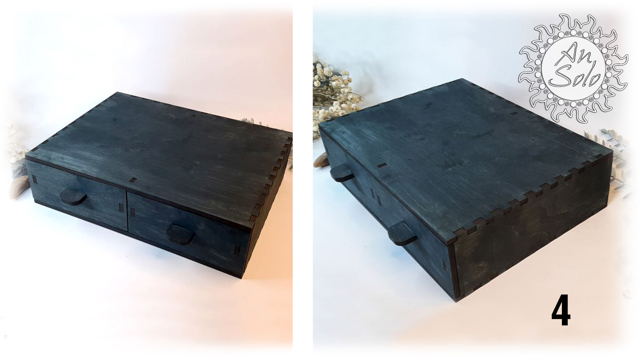4 шкатулка с двумя ящиками 30х24,5х8 см, внутренние размеры одного ящика 19,8х12,5х8 см.
