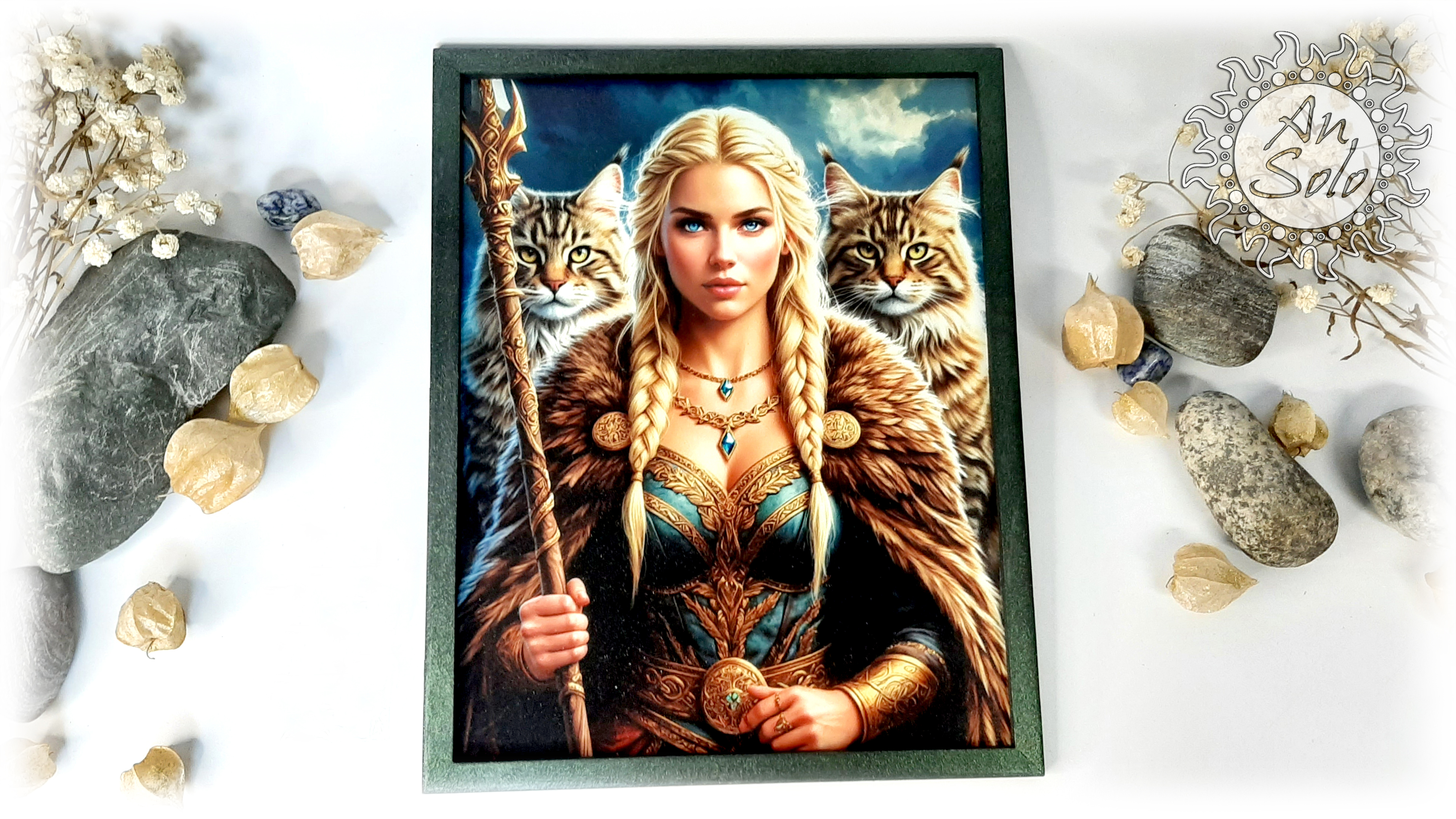 Деревянная рама придает изделию элегантный и классический вид, подчеркивая важность и ценность образа.