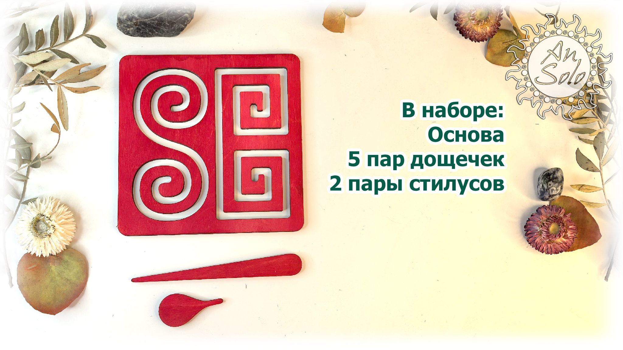 Изготовлен из натурального дерева. В комплекте: основа, 5 пар дощечек, 2 пары стилусов.