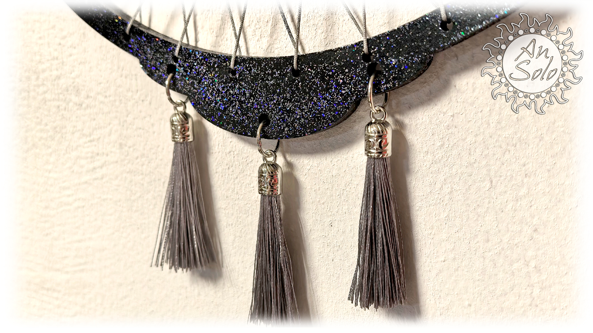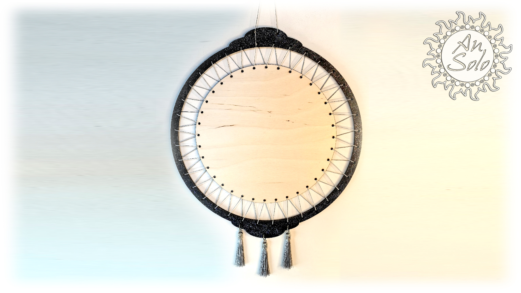 Панно оформлено в блестящую рамку, которая подчёркивает его красоту и элегантность. Дополнено декоративными кисточками, что придаёт ему особый шарм.